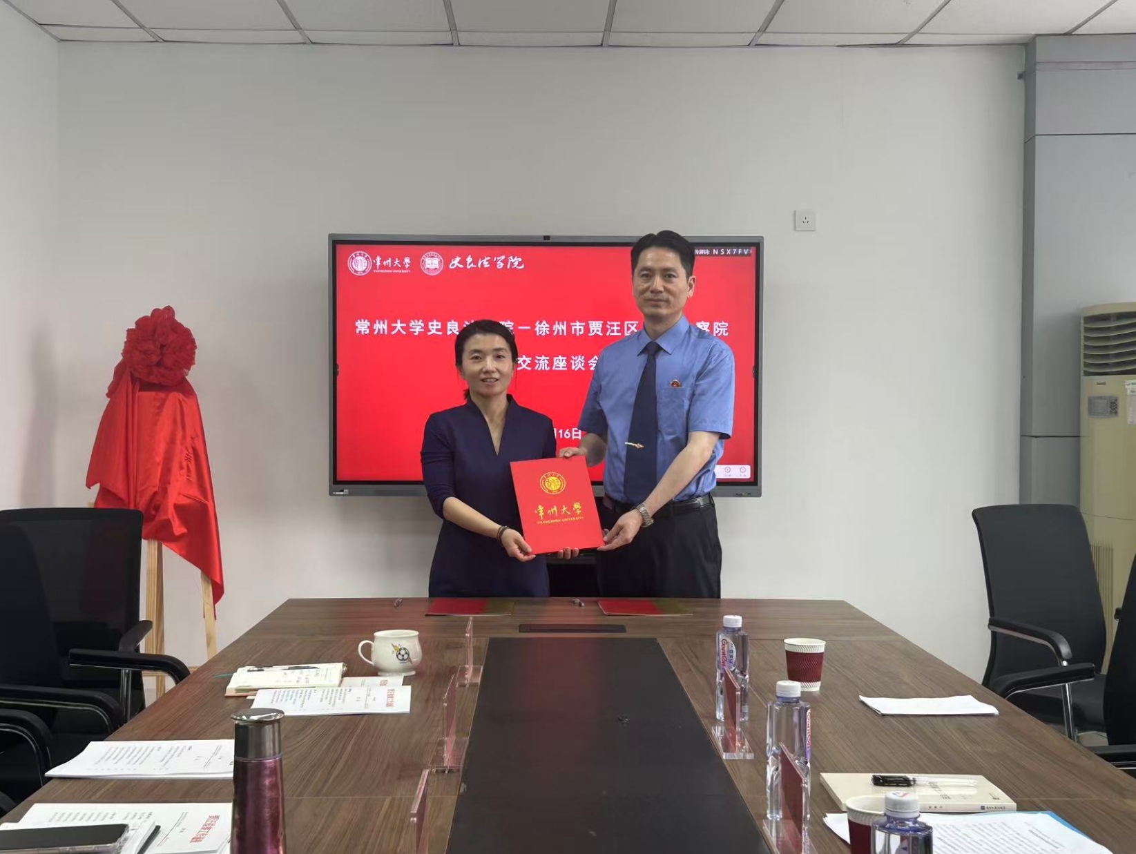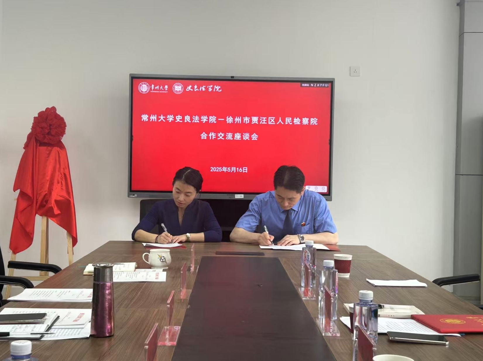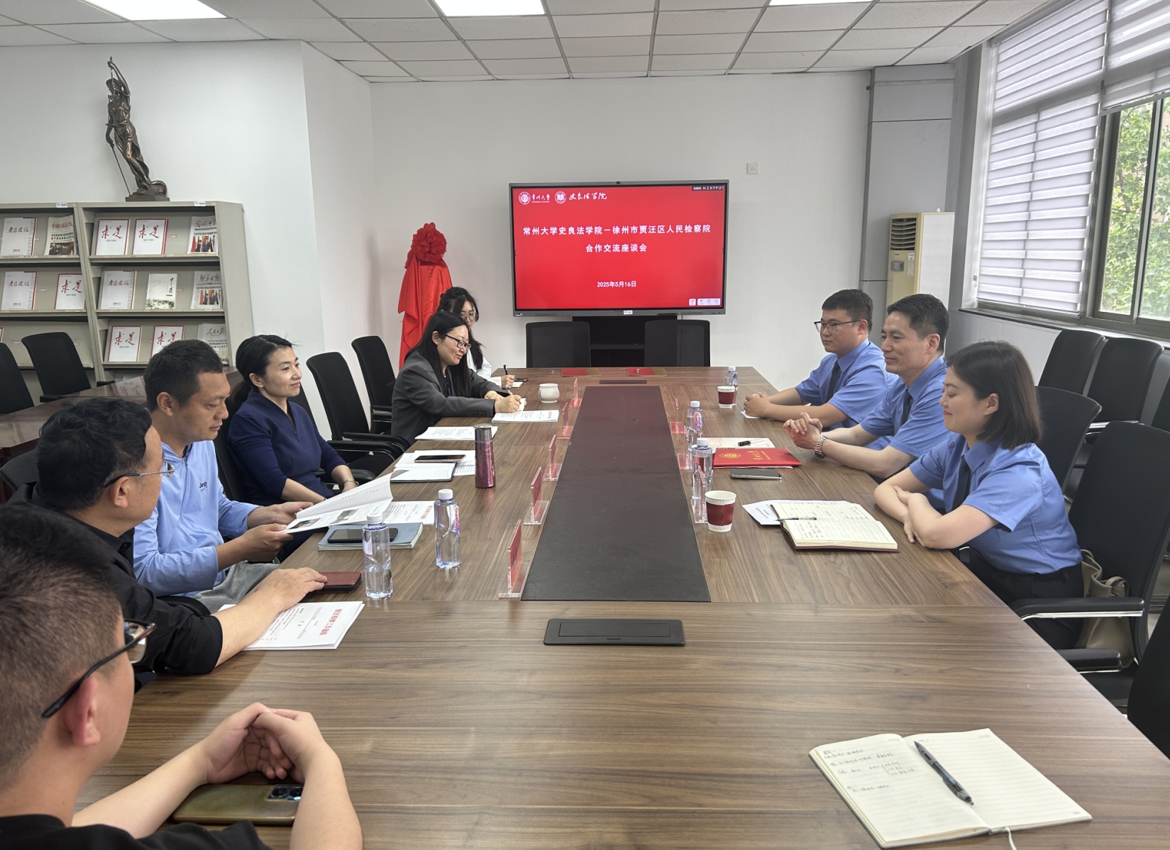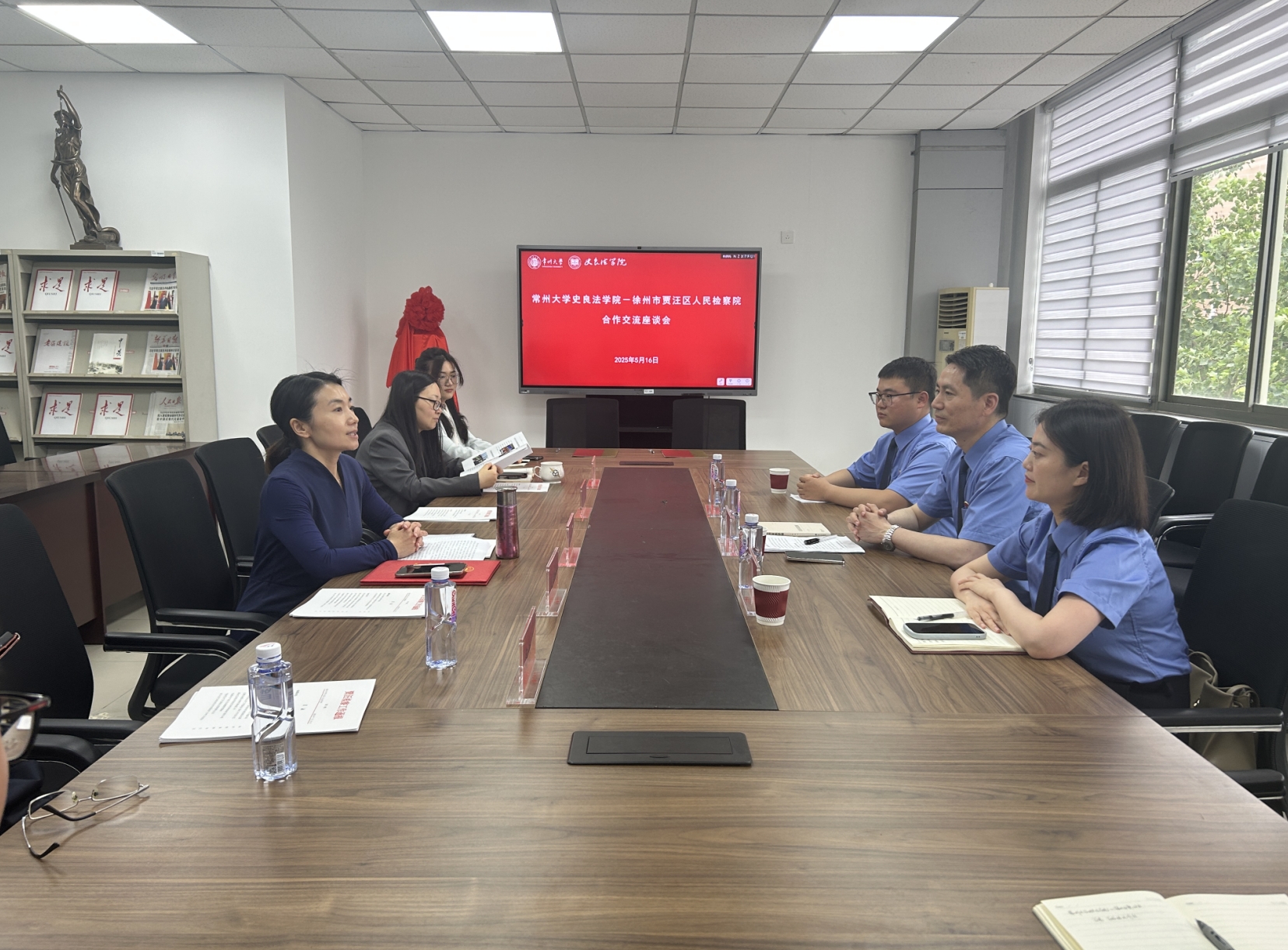 5月16日下午,徐州市贾汪区人民检察院与beat365官方网站于科教城校区文彬楼416成功举办合作交流座谈会。徐州市贾汪区人民检察院党组书记、检察长王辉,徐州市贾汪区人民检察院党组成员、副检察长吴旋,徐州市贾汪区人民检察院办公室干警张振,beat365官方网站党委书记陈婷、党委副书记王禄佳、学院教师代表及徐州地区学生代表参加座谈会。