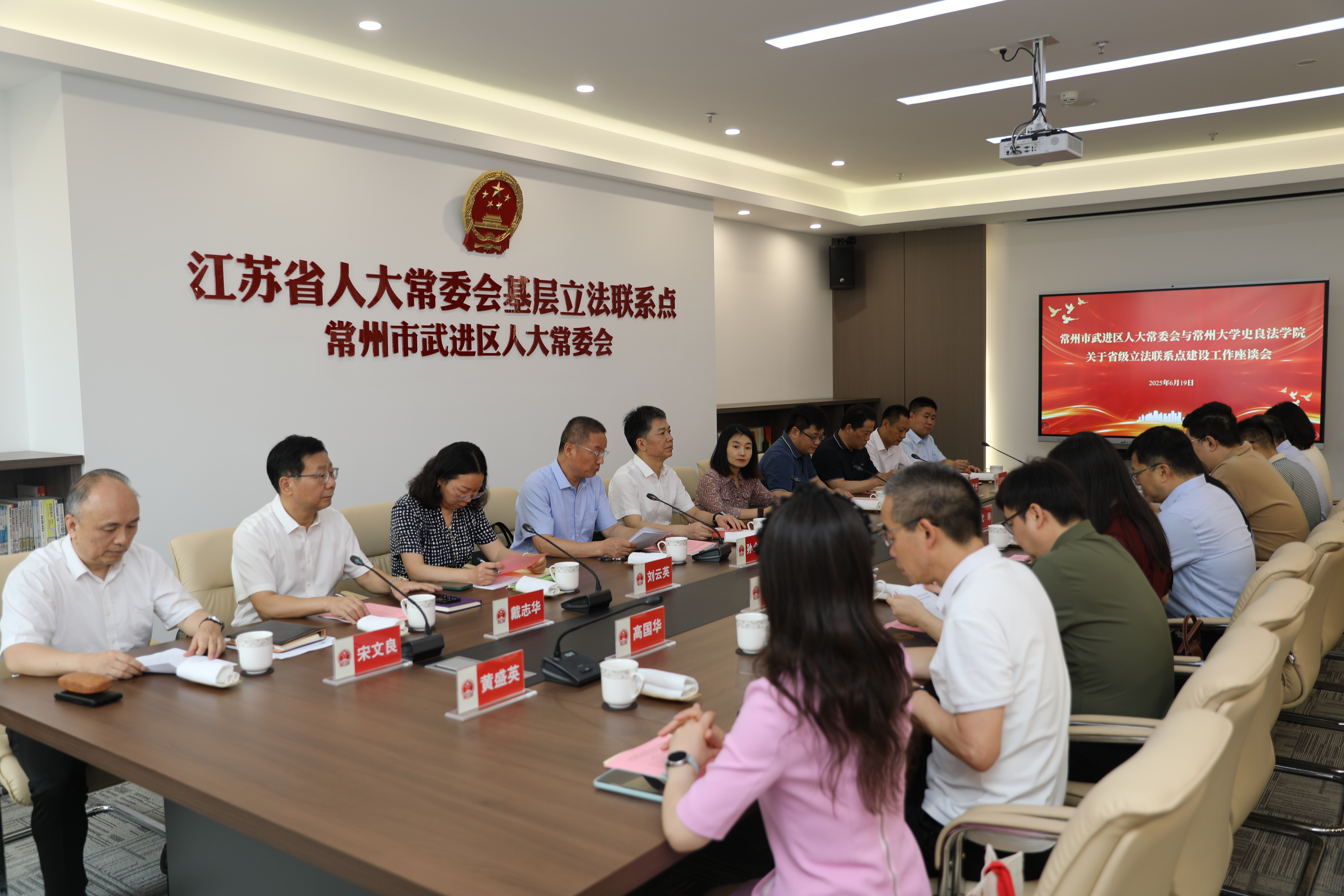 为加强校地合作,推动地方立法工作,6月19日上午,beat365官方网站与武进区人大常委会开展省级基层立法联系点工作座谈会。武进区人大常委会主任、党组书记石伟东,区人大常委会党组成员宋文良、各委室主任,学院党委书记陈婷、院长张建等领导班子成员、部分师生代表参加会议。会议由区人大常委会副主任、党组副书记孙金才主持。